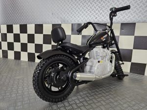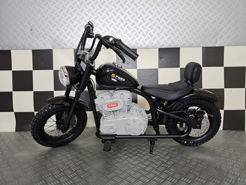 Bien loin des mécaniques bruyantes, nous vous proposons aujourd’hui un Chopper électrique en 24V pour enfant. Nous avions des motos pour les petits en 12V, des motos pour les plus grands comme la ZZZ800 ou encore la FastBike (pour les encore plus grands!) mais rien pour l’entre deux. C’est pourquoi nous avons décidé après plusieurs recherches de vous proposer ce modèle.