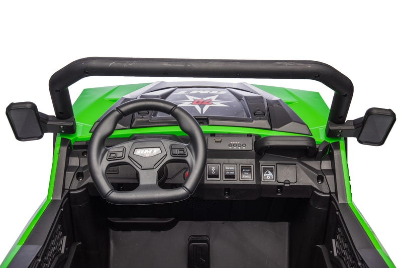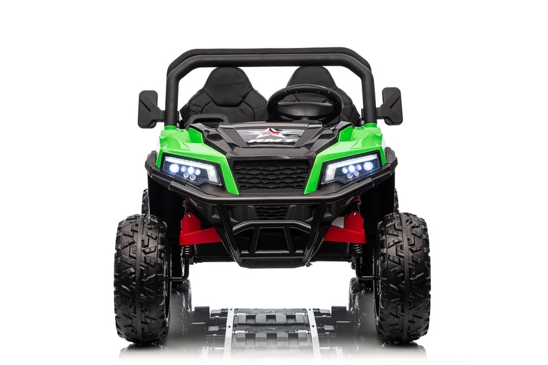 On aime aussi son assise en similicuir, ses 4 moteurs, sa télécommande parentale.