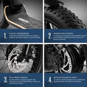 - Batterie 36V 12.5Ah : Pour une autonomie d’environ 30-50km max