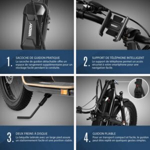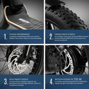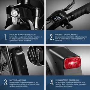 - Batterie 48V 25Ah : Pour une autonomie d’environ 80km max